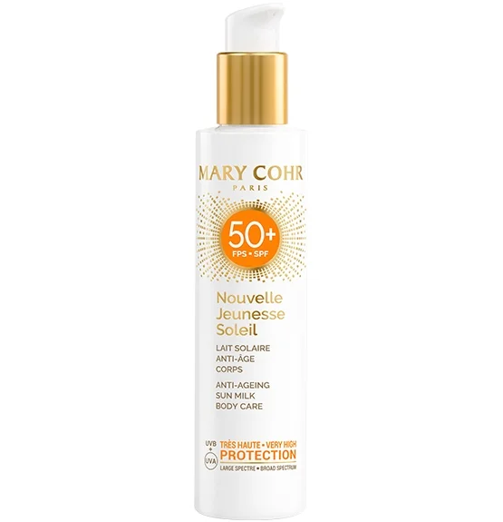 Mary Cohr New Youth Anti-Ageing Sun Milk Body Care SPF50+ ir augstas aizsardzības saules aizsarglīdzeklis, kas palīdz aizsargāt ādu no kaitīgajiem saules stariem un novērst priekšlaicīgu novecošanos. Pateicoties rūpīgi izvēlēto sastāvdaļu kombinācijai, produkts nodrošina efektīvu aizsardzību pret UVA, UVB, infrasarkano un zilo gaismu, vienlaikus saglabājot ādas jauneklīgo izskatu.