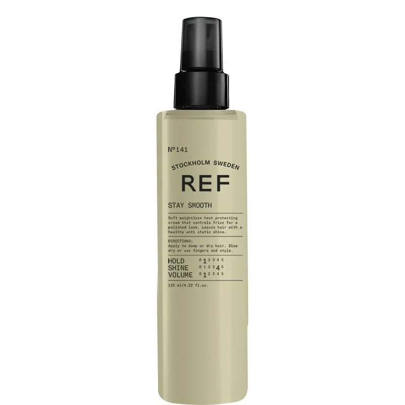 REF 141 Stay Smooth (125ml) is a smoothing cream designed to control unruly and frizzy hair for long-lasting smoothness and shine. This product helps straighten hair and protect it against humidity, preventing frizz even in humid weather. The cream also provides light protection against the effects of heat, making it ideal for use before blow-drying or straightening. Suitable for all hair types, especially wavy and curly hair that needs an extra dose of smoothness and shine.