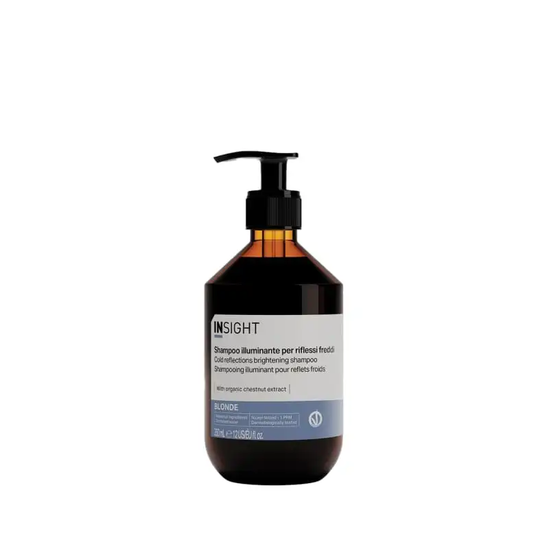 Insight Blonde Cold Reflections Brightening Shampoo ir speciāli izstrādāts šampūns, lai saglabātu un uzlabotu gaišo, blondo vai pelēko matu vēsos toņus. Tas efektīvi neitralizē nevēlamos dzeltenos un zeltainos toņus, piešķirot matiem tīru un spilgtu izskatu. Šampūns ir bagātināts ar dabīgām sastāvdaļām, kas mitrina un aizsargā matus, vienlaikus nodrošinot tiem vieglumu un spīdumu. Ideāli piemērots tiem, kas vēlas uzturēt vēsos toņus un novērst dzeltenīguma veidošanos.