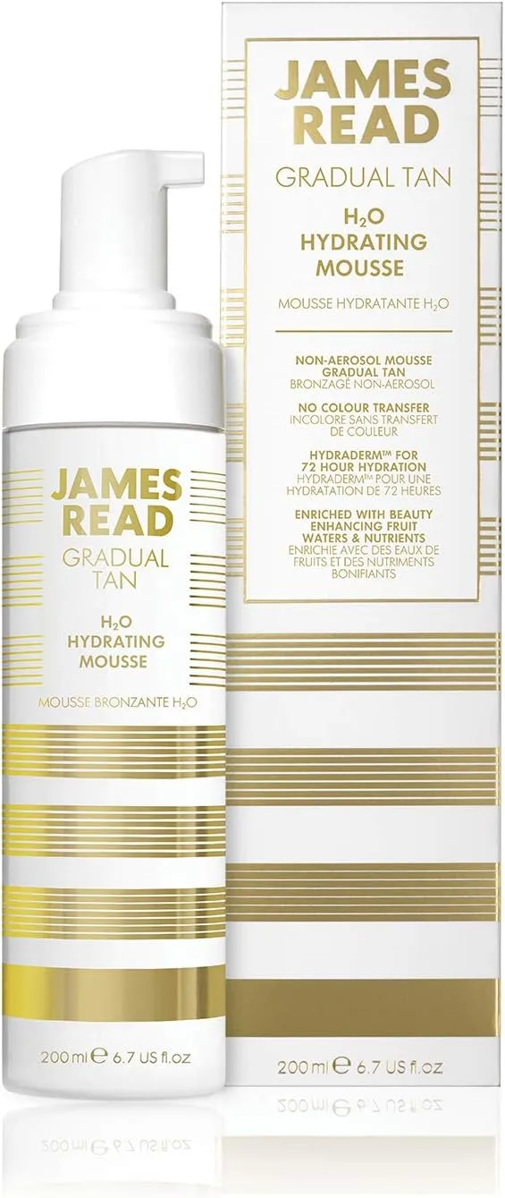 James Read Gradual Tan H2O Hydrating Mousse ir inovatīvs paštonējošs līdzeklis, kas piedāvā dabisku un pakāpenisku iedegumu, vienlaikus dziļi mitrinot ādu. Šī vieglā, caurspīdīgā želejas formula ir bagātināta ar ādai draudzīgām sastāvdaļām, kas nodrošina vienmērīgu un stādu iedegumu bez svītrām un pleķiem.