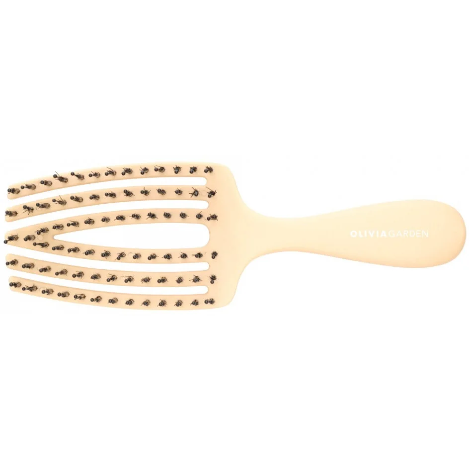 Olivia Garden Fingerbrush Care Mini Yellow ir izgatavots no dabīgām mežacūku un neilona sariem, kas nodrošina perfektu matu ķemmēšanu un izķemmēšanu. Dabīgie mežacūku sari palīdz izplatīt dabīgo matu eļļu no saknēm līdz galiem, nodrošinot matu spīdumu un veselību. Neilona sari nodrošina maigu, bet efektīvu ķemmēšanu, kas ir īpaši piemērota bērnu jutīgajai galvas ādai.