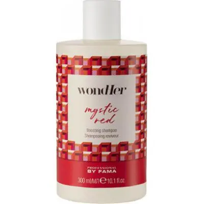 Professional By Fama Wondher Mystic Red Boosting Shampoo 300ml ir tonējošs šampūns, kas izstrādāts, lai aizsargātu un uzlabotu sarkano matu krāsas intensitāti un spilgtumu. Tā formula satur īpašus pigmentus, kas palīdz saglabāt sarkano matu toni svaigu, novēršot krāsas izbalēšanu. Šampūns maigi attīra matus un galvas ādu, vienlaikus mitrinot un barojot matus, padarot tos spīdīgus un viegli pārvaldāmus. Ideāli piemērots dabīgiem un krāsotiem sarkaniem matiem, palīdz saglabāt to spilgto toni ilgāk.